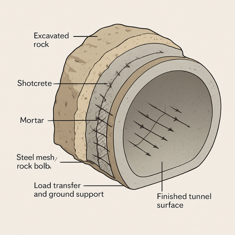Mortar and shotcreting systems are engineered to withstand high loads, ground movement, and moisture conditions commonly encountered in tunnels. These linings improve durability, reduce deformation, and protect tunnels from water ingress and environmental damage. Widely used in transportation tunnels, metro projects, and hydropower facilities, shotcrete linings ensure long-term performance and cost-effective construction in complex underground environments.