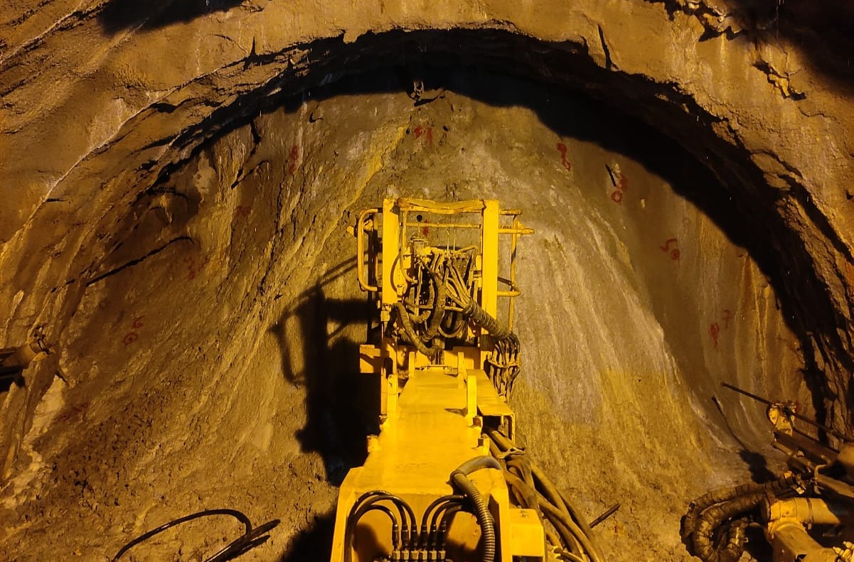 Located in the young Himalayas, the T-77D tunnel on the Katra–Banihal section of the USBRL project faced severe geological and hydrological challenges, including fractured rock mass, tectonic thrusts, and high overburden pressure. A major collapse at the crown created an 8–10 m longitudinal cavity, threatening surface stability and community safety. Advanced grouting, cavity filling, and structural reinforcement techniques were deployed under hazardous conditions to restore stability and ensure progress on this strategically vital railway link.